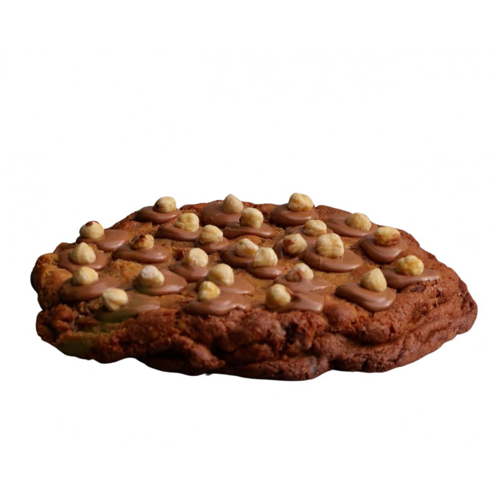 Big Cookie avec des noisettes entières torréfiées, morceaux de chocolat au lait Valhrona et praliné amandes/noisettes
